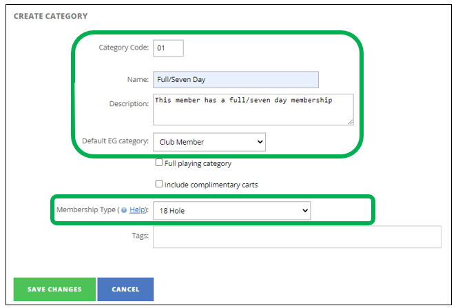 Once complete you will see the categories you have set up for your club.