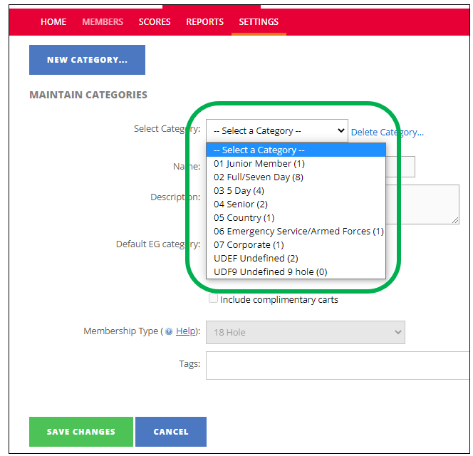 - Membership Type can be amended between 18 or 9 hole