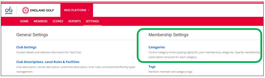 Go into “Settings” and select “Categories” which is found under Membership Settings.