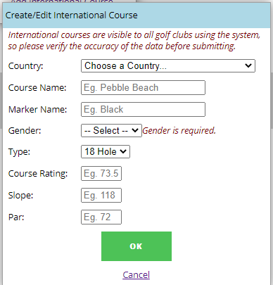 - Click OK on the ‘Create/Edit International Course’ box.