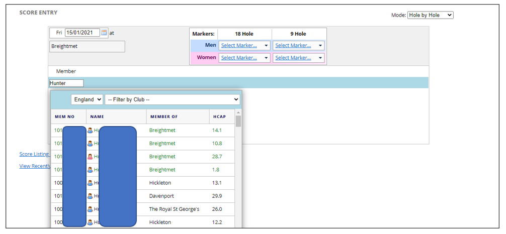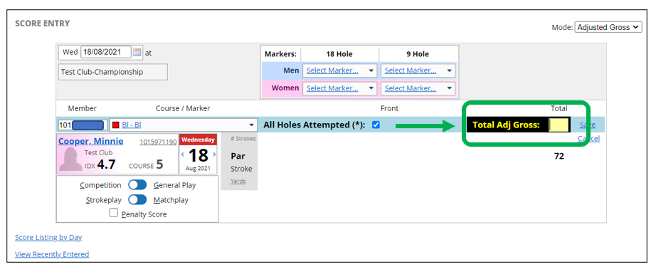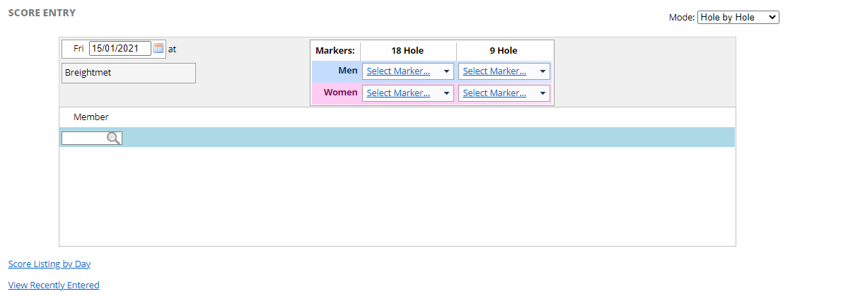 - Gender (this will default to the gender of the member whose score is being added)