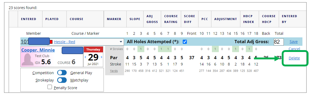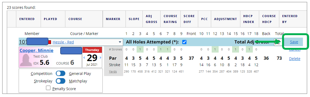 - Should you wish to edit a score click ‘Edit’ next to the relevant score and depending on how the score was entered you will have the option to edit the hole-by-hole score or the Adj Gross Score.