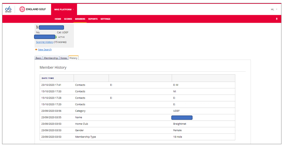 - Please ensure the member’s Date of Birth and Email address are accurately recorded as a minimum within the WHS platform, without this information the Handicap Index will not be activated for use and the member will be unable to access their WHS My England Golf member account or MyEG app and any of their affiliation benefits.